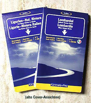 Blatt 5 und 2 der offiziellen Italienkarte des TCI (Touring Club Italiano). Durch den großen Maßstab bestens zur Feinplanung geeignet. Gute Klassifizierung, schwer befahrbare und unbefestigte Sträßlein sind gut markiert. |