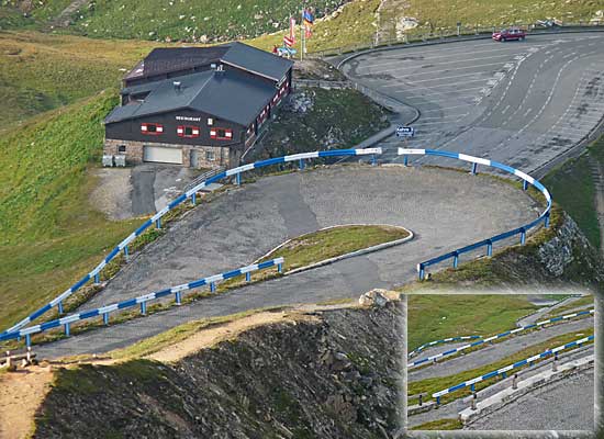 Gepflasterte Serpentinenstraße auf die Edelweissspitze