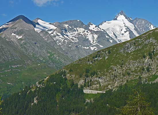 Einmal den Gloßglockner ohne jede Wolke zu sehen ist selten; Auffahrt von Heiligenblut unweit der südlichen Mautstation