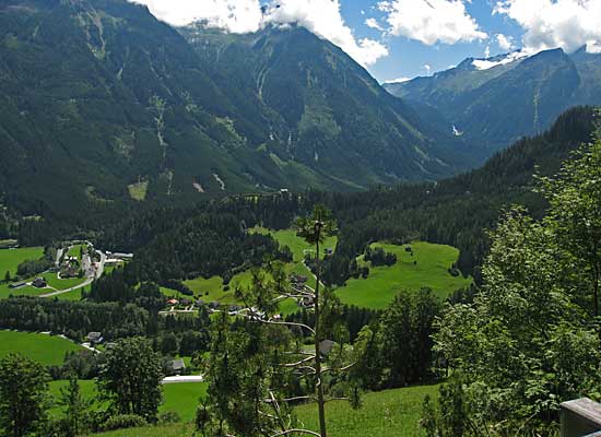 Fährt man die alte Straße über den eigentlichen Pass ist der Wasserfall schon weiter entfernt - links unten die Route Richtung Gerlos-Mautstation