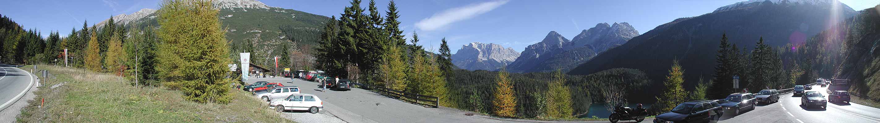 Ohne die Zugspitze eines Blickes zu würdigen, quälen sich meist Urlaubsmobile Stoßstange an Stoßstange über den Fernpass (s. rechts)