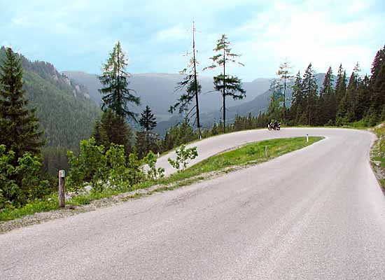 Eine der zahlreichen Kehren auf der gut ausgebauten Alpenstraße