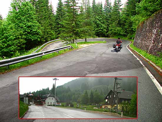 Jede Menge Kurven findet man sowohl auf der slowenischen als auch auf der österreichischen Seite der Grenzstation oben auf dem Seebergsattel (die Sprache ist aber auf beiden Seiten gleich: Slowenisch!)