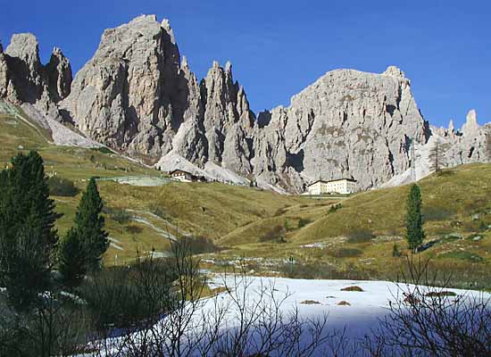 Auch die Passhöhe wird von einer zackig-schroffen Bergkulisse umrahmt