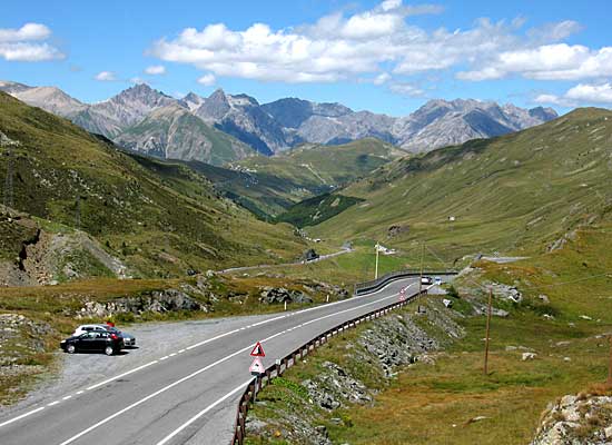 Blick von der Foscagno-Abfahrt in Richtung Passo d'Èira. Dahinter gehts hinab ins Valle di Livigno.