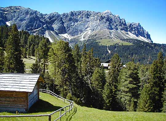 Über saftige Almen geht es hinauf zum Würzjoch, den Kammausläufer des Peitlerkofel immer im Blick, ...