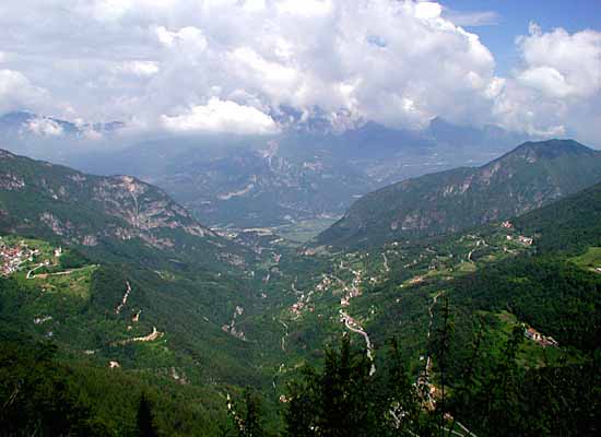 (Ausblick ca. 6 Kilometer oberhalb Rovereto nahe Terragnolo hinunter ins Tal bei Volano)