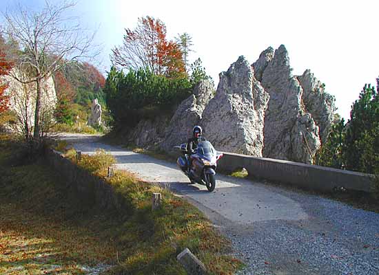 Abenteuerlich anmutend verbindet die teilweise auch mal grob geschotterte Trasse den Spina- mit dem Dosso Alto-Pass, ...