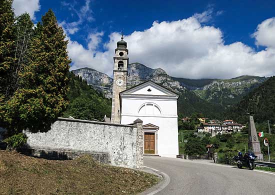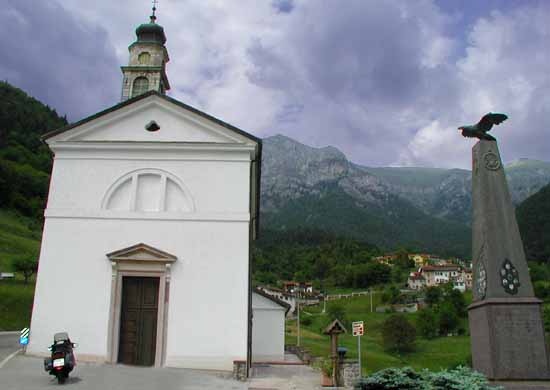 Neben dem Kirchlein des Ortes Servo westlich des Passes findet sich mal wieder eine in Italien so beliebte Adlerplastik