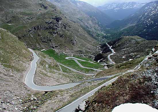 Schon weit oberhalb des Valle di Locana müht sich die Straße an den Hängen des Gran Paradiso-Massivs, um in zahlreichen Kehren an Höhe zu gewinnen; ...