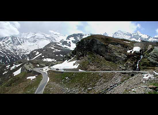 ... dabei nutzt sie den Einschnitt zwischen den Gletschern des Gran Paradiso (bis 4061 m) einerseits und des Lavanna (Bild, 3619 m) andererseits