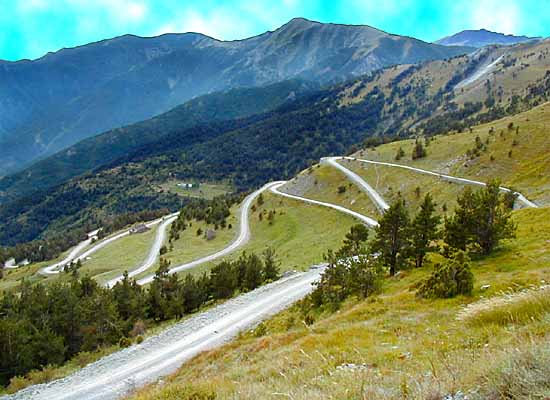 ... aber auch weiter oben findet man genügend Gelegenheit, engste geschotterte Kehren meistern zu können