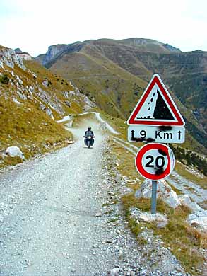 Nur Enduro-Profis werden sich über diese Geschwindigkeitbegrenzung hinwegsetzen können. Im Hintergrund die mächtigen alten Militäranlagen.