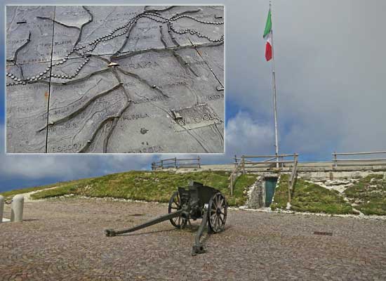 Eine Bronzetafel zeigt den Frontverlauf am Monte Grappa in der dritten der drei Piaveschlachten