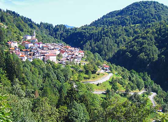 Der malerisch gelegene Ort Ligosulo am Einstieg zur Paularo-Strecke