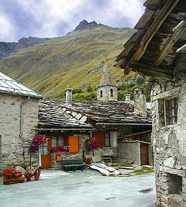 Fast schon ein Museums-Dorf: Bonneval-sur-Arc an der südlichen Rampe des Iseran. Das gesamte Dorf besteht noch wie vor hundert Jahren aus grauem, alten Schiefergestein.