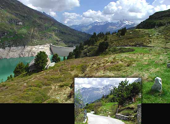 Nurmehr sehr eng und windungsreich ist der Straßenabschnitt an der Staumauer des Zervreilasees entlang