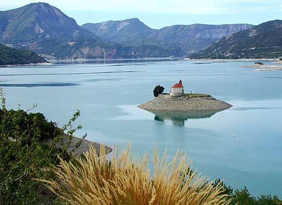 Das Kirchlein St. Michel steht malerisch auf einer kleinen Insel