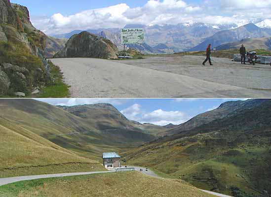 Die beiden Biker haben Pech: Zwar ist irgendwo da hinten der Galibier, aber die Wolken hinter dem Croix de Fer vereiteln gen Osten den Blick; der aber war vom Glandon hinüber zum Croix de Fer noch frei
