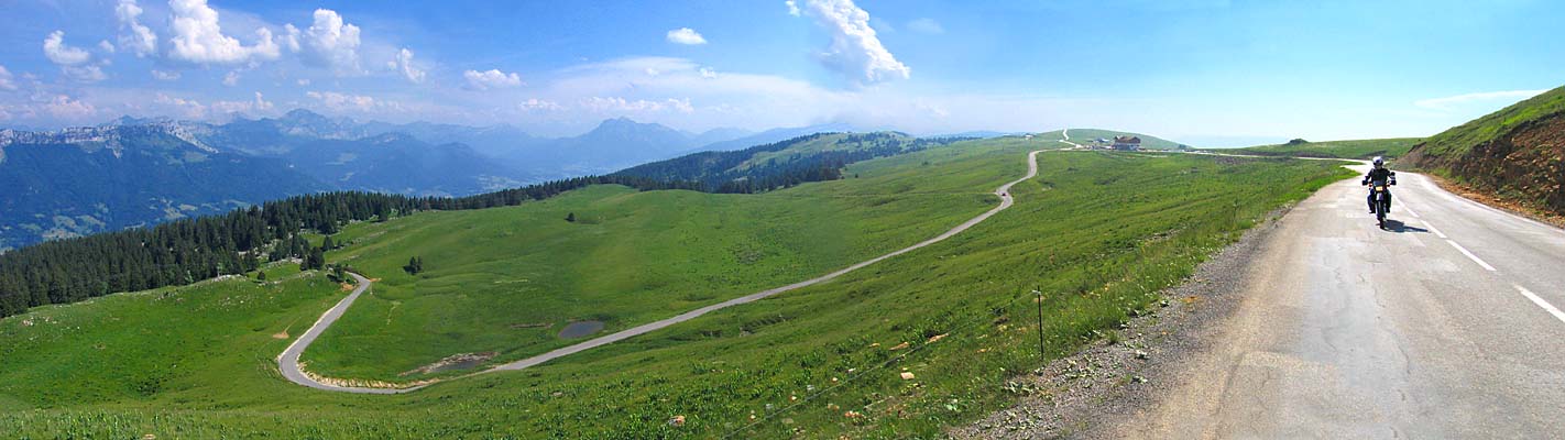 In weiten Kehren gewinnt die Höhenstraße Abstand zum Ort Leschaux (am gleichnamigen Pass)