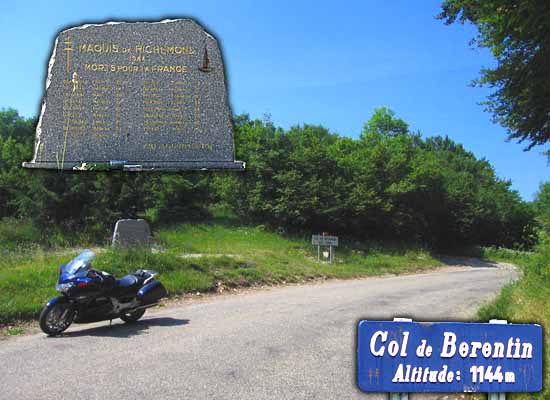 Am Col de Richemont findet sich das Ehrengrab 'Maquis de Richemont' mit der Jahreszahl 1944. Offensichtlich kam es hier im 2. Weltkrieg zu einem verlustreichen Ereignis, das sich jedoch nicht ergooglen läßt. Der Col de Berentin ist einer der gesichtslosen Waldpässchen der Region.