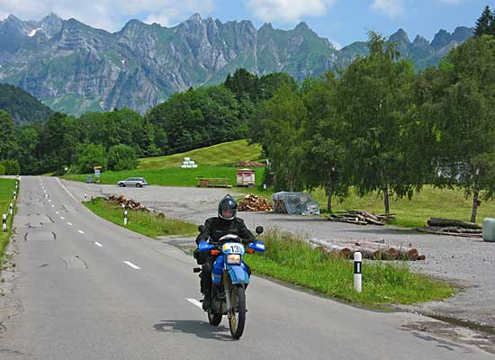 Südwest-Anfahrt mit Blick auf die ersten hohen Berge südlich des Bodensees