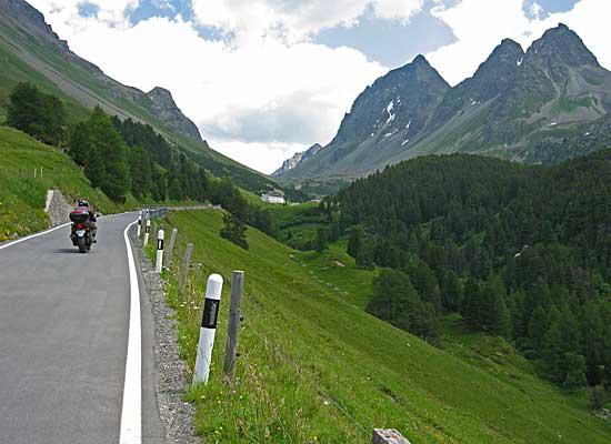 Westlich der Passhöhe steigt die Strecke zunächst gemächlich an