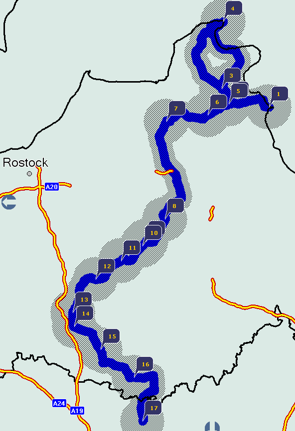 Start: Göhren auf Rügen (1); Ziel: Rheinsberg (17) über Müritz (15)